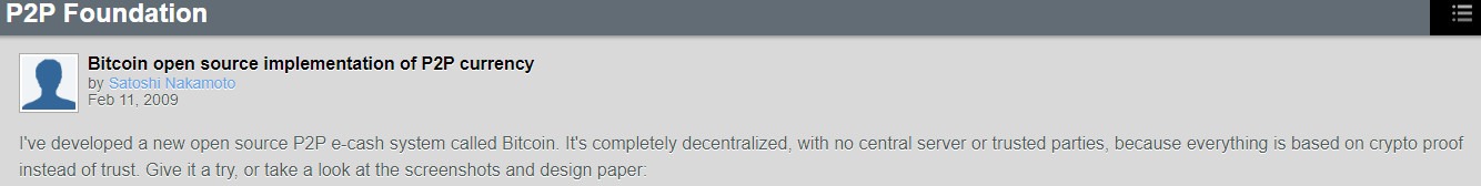 2009 02 11 Bitcoin open source implementation of P2P currency. p2pfoundation