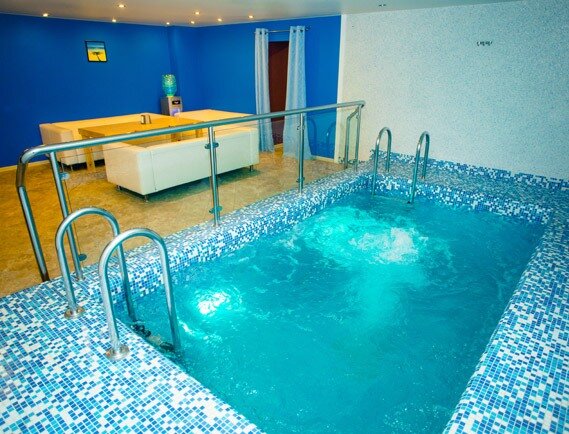 Сауна с бассейном . В наличии два бассейна: один 2,10×3,7 метров в банкетном зале (тёплый, с подсветкой и аэромассажем), второй 2,40×4 метров . Бильярдная, банкетный зал, караоке с профессиональным звуком, Wi-Fi, комната для курения, комната отдыха, спутниковое ТВ, DVD .