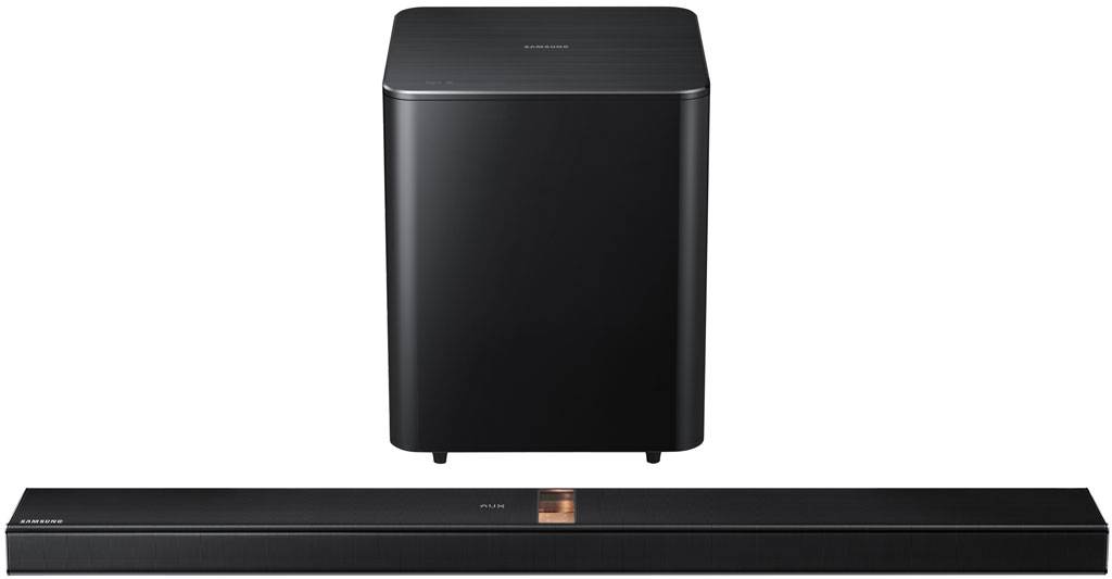 Samsung HW-J8500R Wireless Multiroom Curved Soundbar w/ Wireless Subwoofer A curved design that blends seamlessly with your compatible Samsung Curved TV, the HW-J8500R Soundbar beautifully completes your home entertainment experience . Surround yourself with sound and bring theater-quality audio to your favorite entertainment .