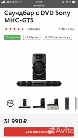 Саундбар с DVD Sony MHC -GT4D//M . Цена: 31 992 руб . Купить . Саундбар с DVD Sony MHC-GT3 . Цена: 25 192 . . .