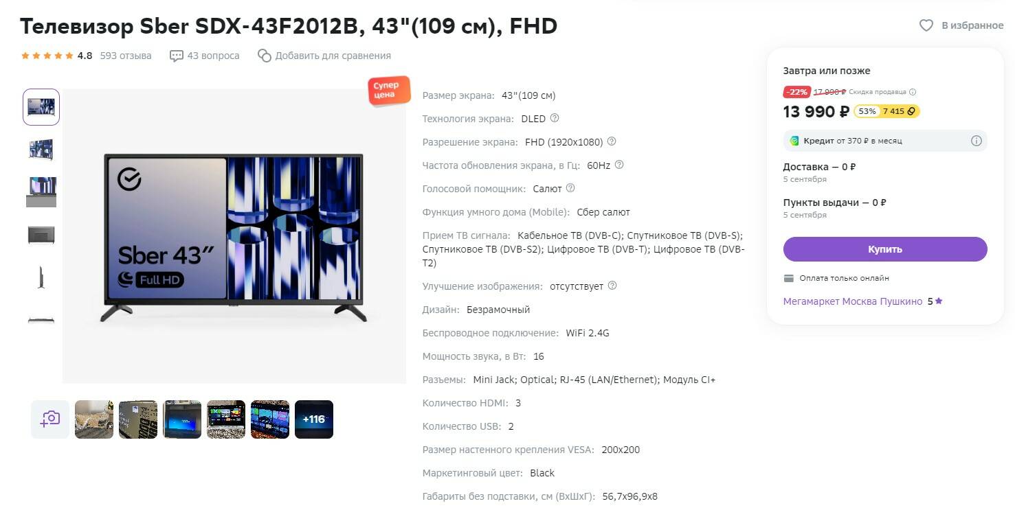 Sber sdx 43u4124 характеристики 91 фото