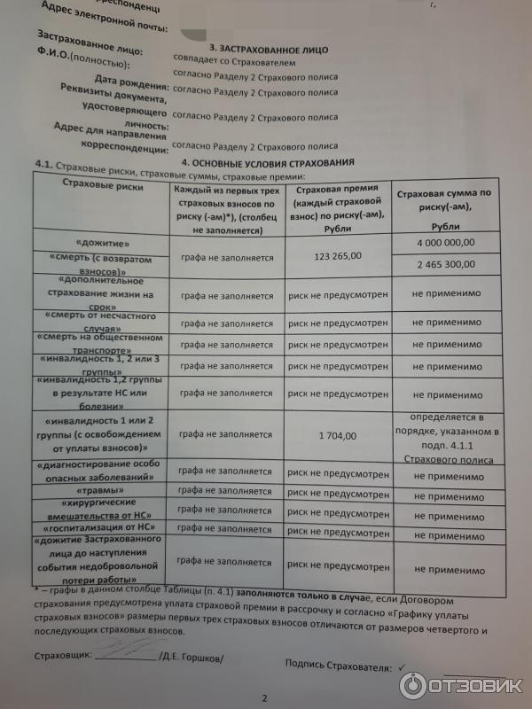 Сбербанк таблица страхования