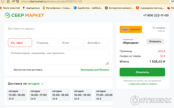 Сбермаркет сумма доставки