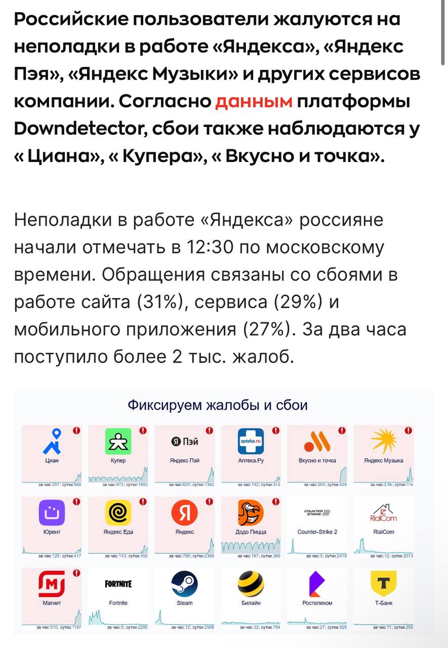 Сбои сегодня
