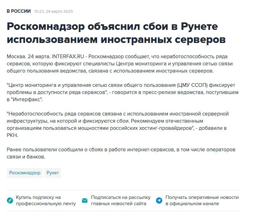 Сбой рунета сейчас