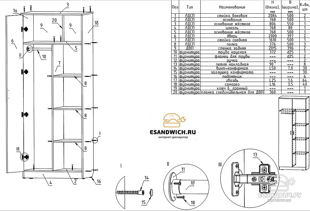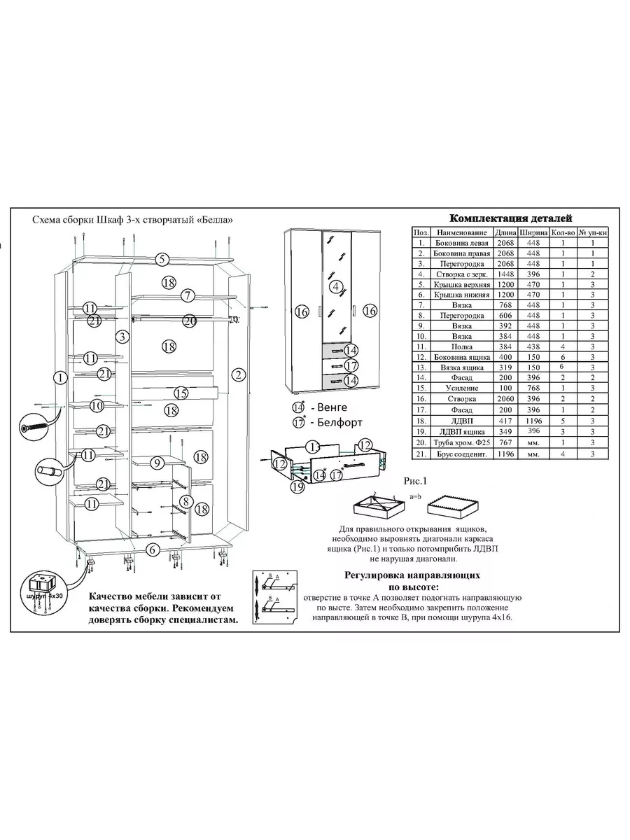 Сборка шкафа 3х створчатый