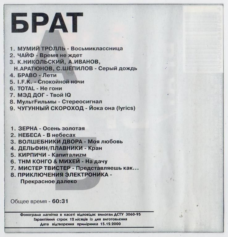 СаундтрекАльбом DANA Music 2000ТректлистКультовый фильм «Брат» — российский художественный фильм, боевик . . .