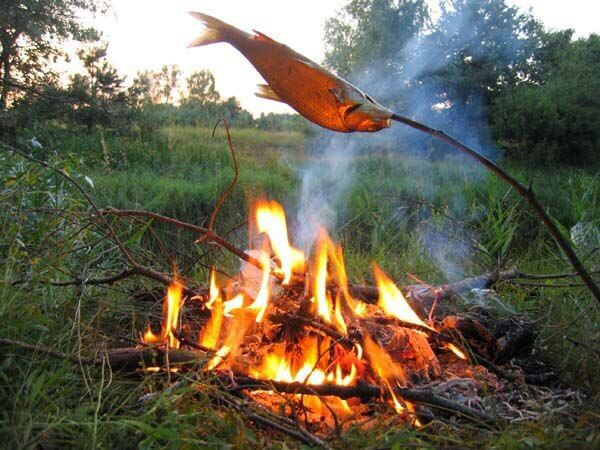 Для приготовления ухи, чая, рыбацкой похлебки в костре лучше всего сжигать дубовые, березовые или ольховые сухие сучья — они дают больше тепла, меньше дымят, от них не разлетается и не попадает в котелок зола.