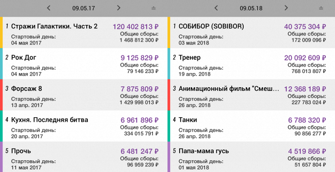 Мстители: Война бесконечности . . . Ф8 Сборы фильма «Форсаж 8» указываются по данным журнала BoxOffice, а не с сайта Box Office Mojo, так как в данных последнего были обнаружены ошибки .