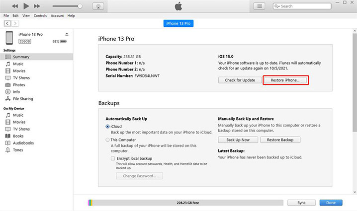 Сброс айфона через айтюнс