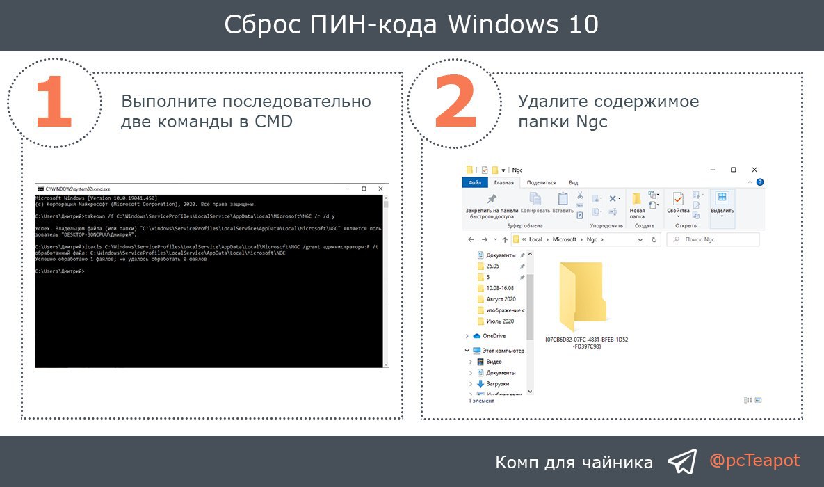 Сбросить пин код виндовс