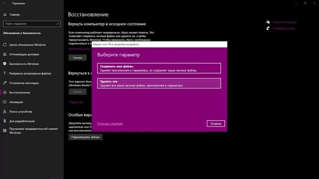 Сбросить виндовс 8 до заводских