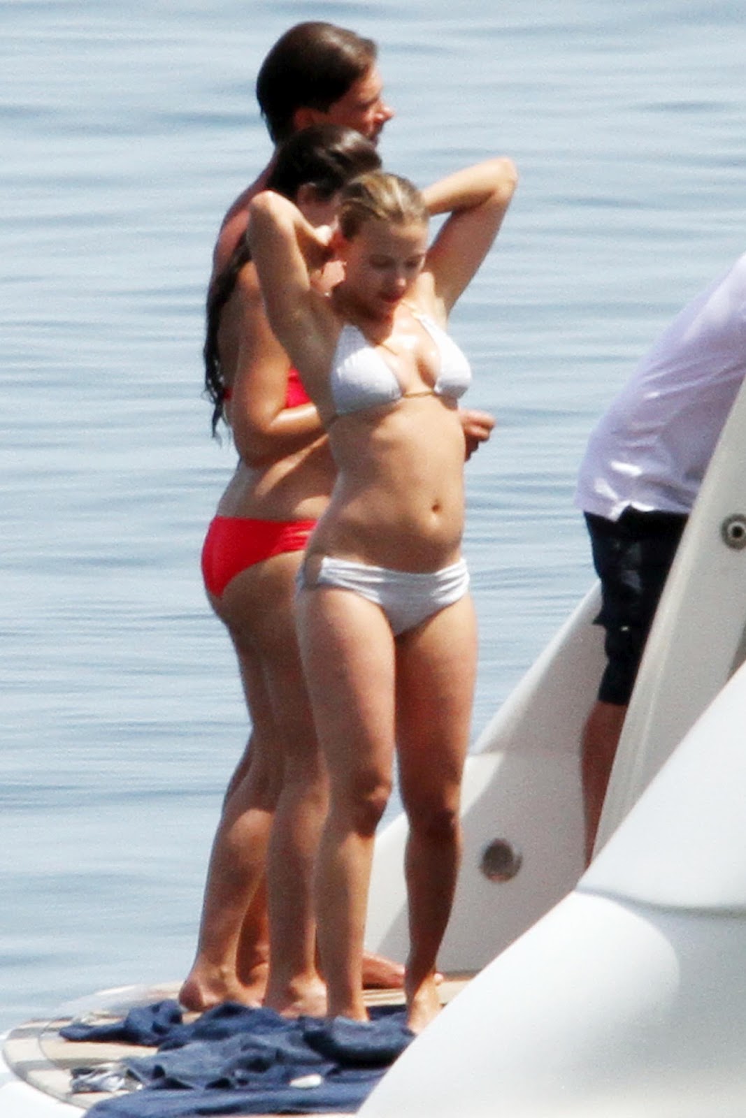 That's Scarlett Johansson in a bikini, modeling for us in an awesome posish. Not on purpose, maybe, but still. Yow. Za.