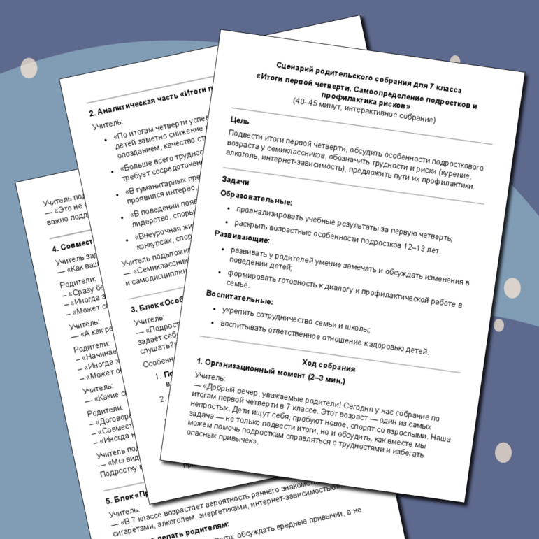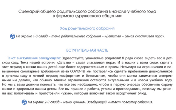 Сценарий для собрания родителей