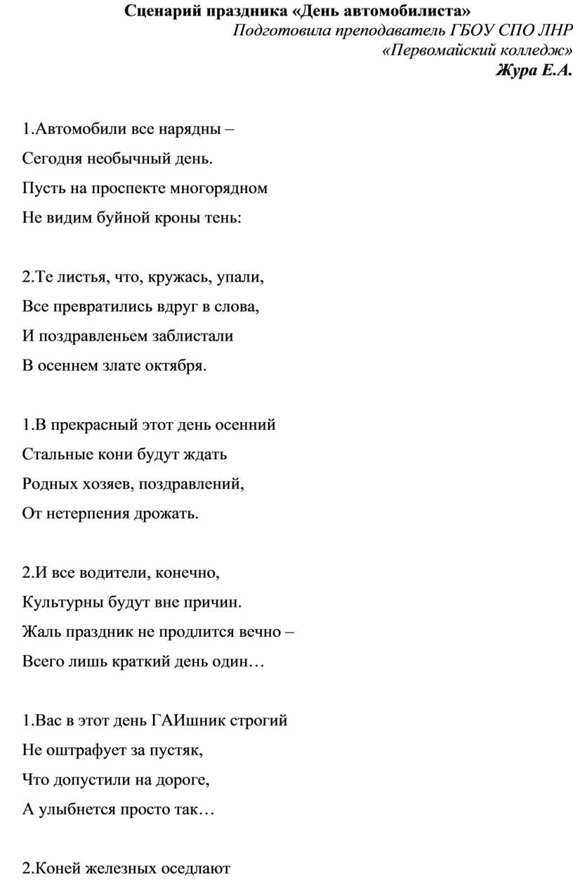 Сценарий дня водителя с конкурсами