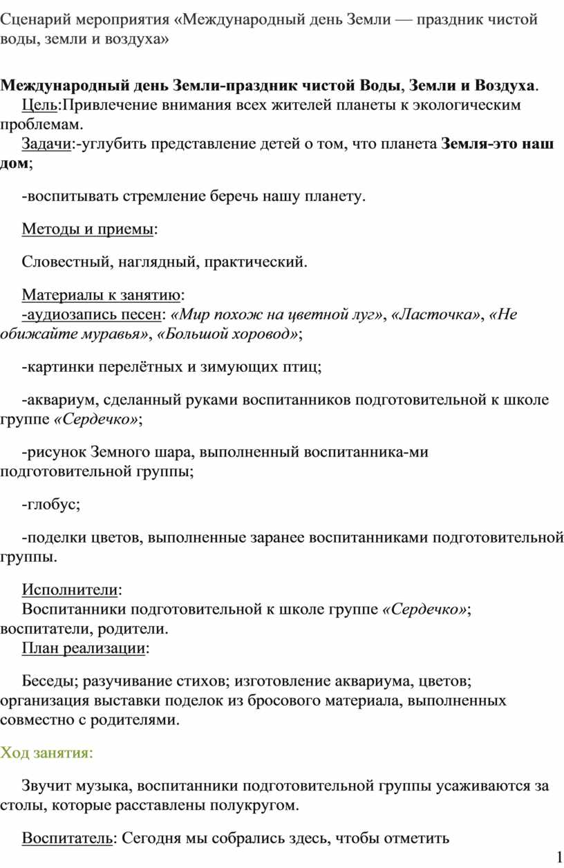 Сценарий ко дню земли для детей