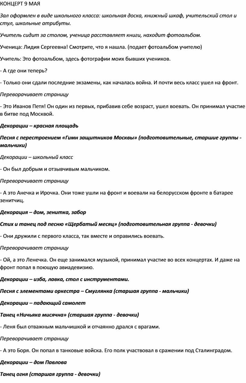 Сценарий концертной программы день города