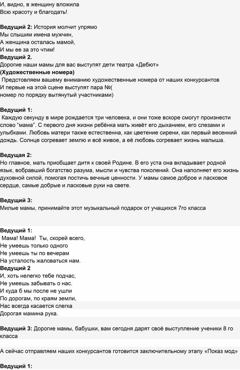 Сценарий конкурса мама года