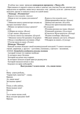 Сценарий мама и я