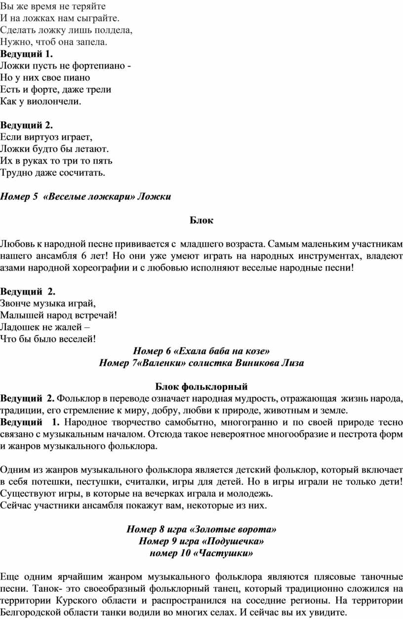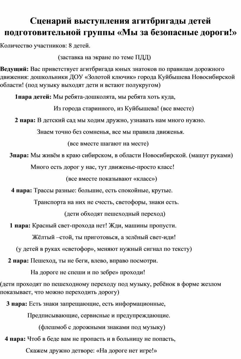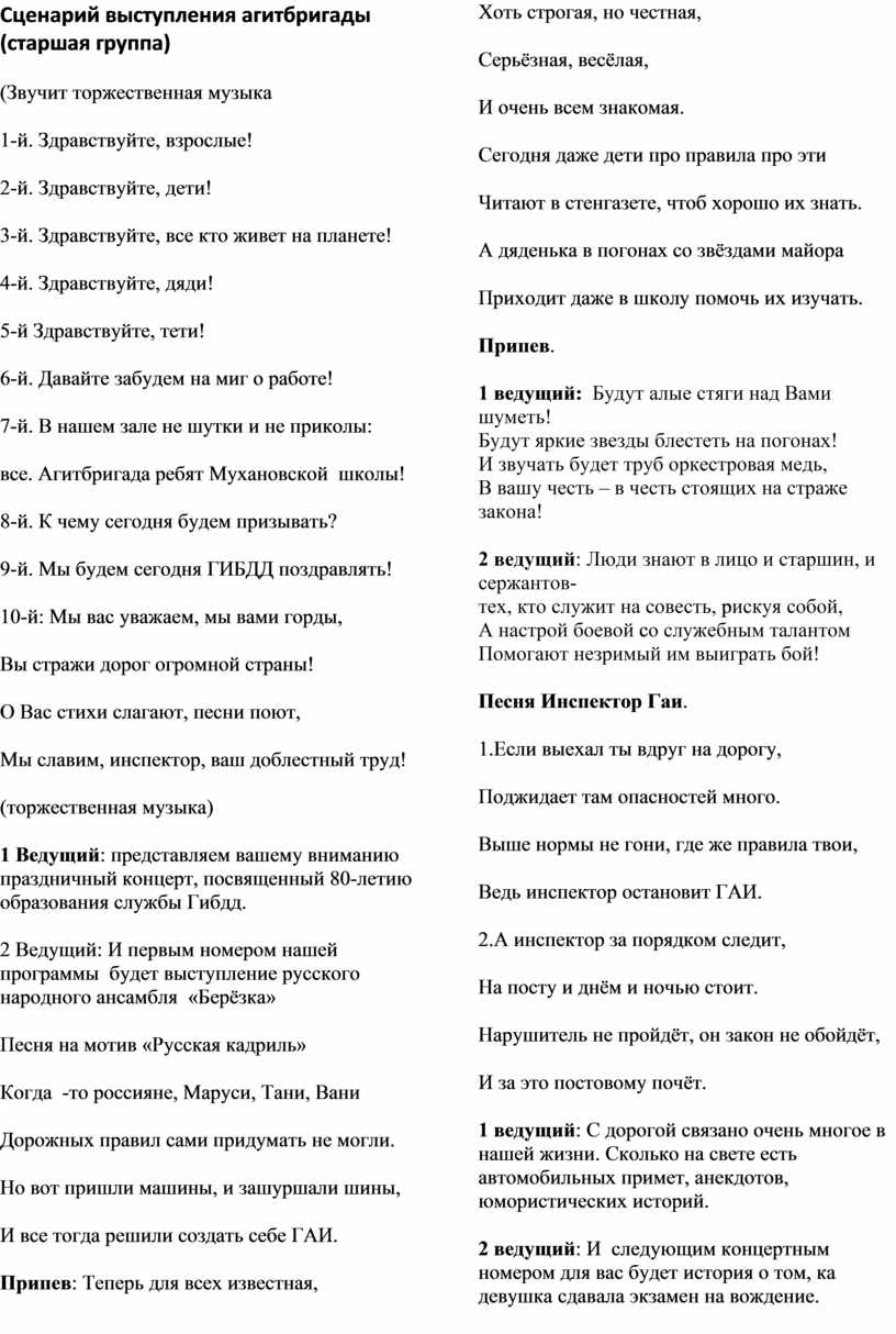 Сценарий выступления группы
