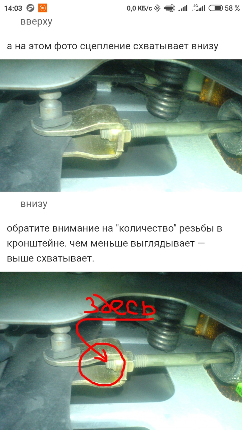 Сцепление схватывает в самом низу