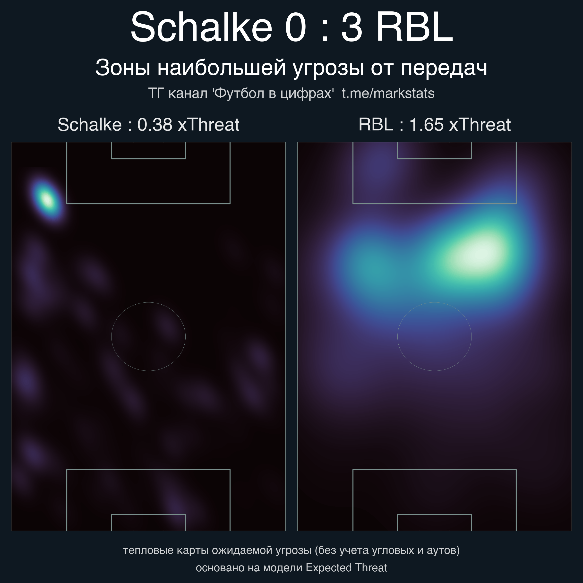 ▪ xThreat без учета угловых: 0.38 - 1.65