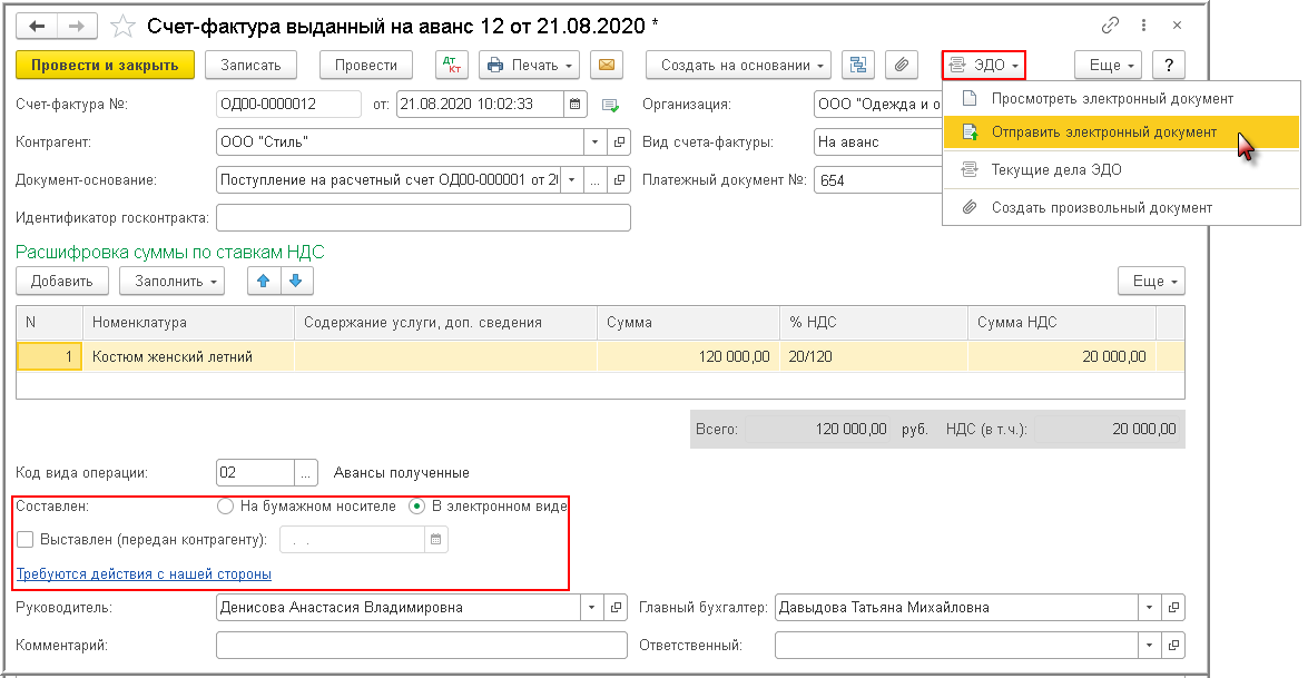 Счет фактура на аванс как создать