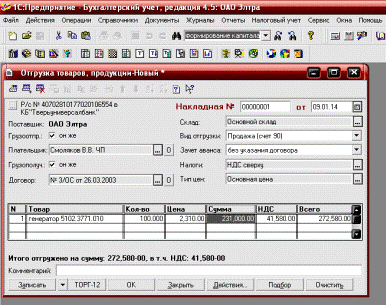 Счет отгружен