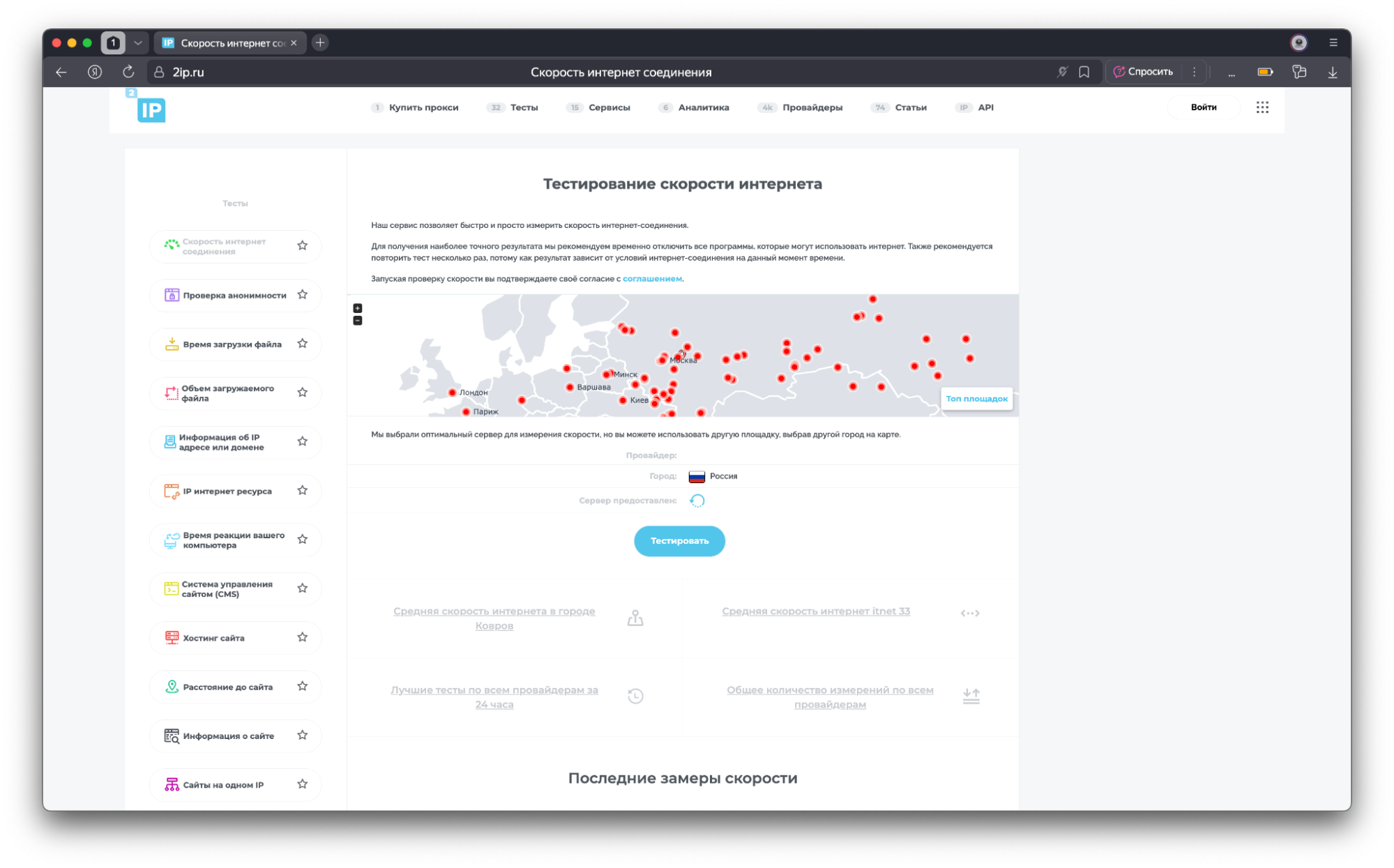 Счет скорости интернета