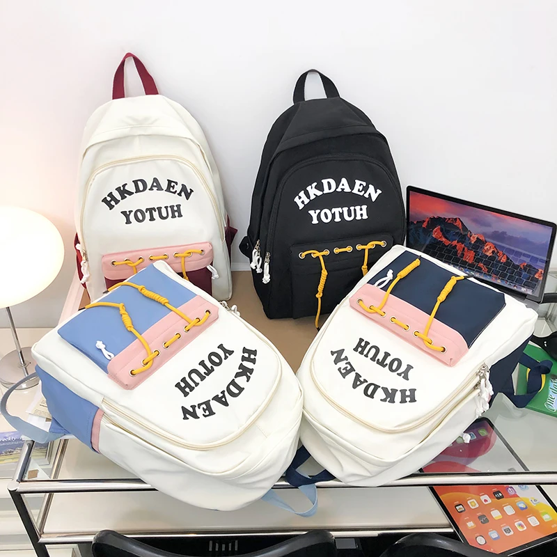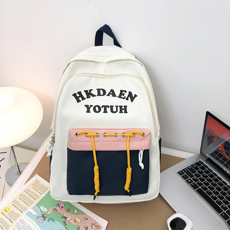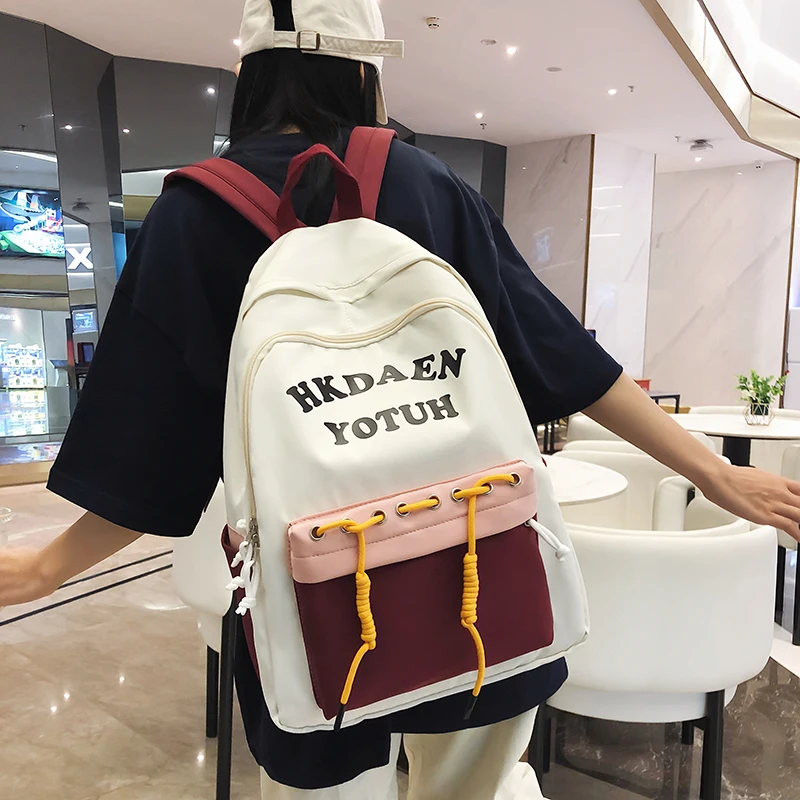 RgJdBywcVYHere you can buy School Bag Female Korean Version Student Junior High School Student Hit Color Backpack Cute Large Capacity Backpack with free delivery to your post office.