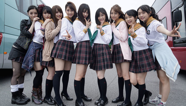 A small group of Japan's most famous export, schoolgirls in uniform. (I believe the correct collective noun is a "bevy.")