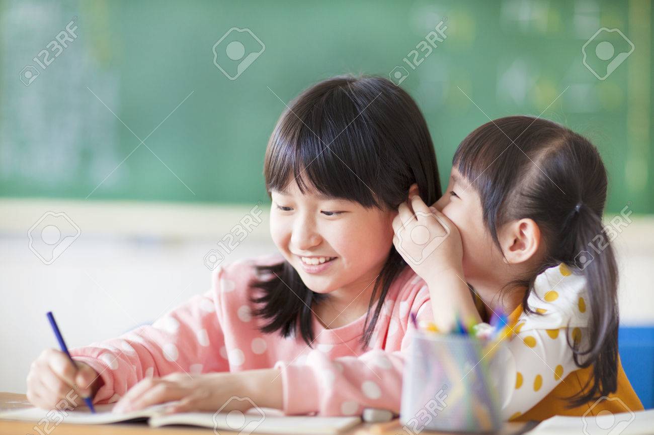Schulmädchen beim Teilen