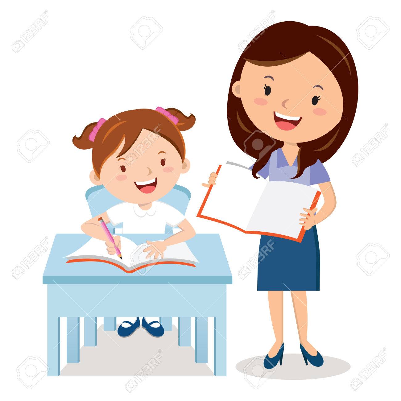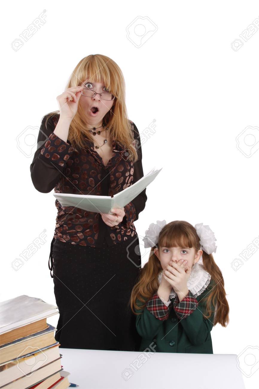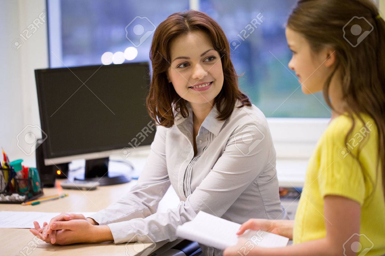 Schulmädchen und Lehrer