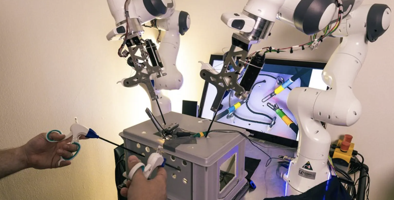 Robotic surgical systems such as the da Vinci X are very impressive, with their two arms that are controlled by the surgeon's two hands. An experimental new system takes things even further, though, by adding two more arms controlled by the user's feet.The four-armed laparoscopic setup is being developed by scientists at Switzerland's EPFL research institute.Each of the user's hands grasps a separate controller that looks kind of like a set of scissor handles. Utilizing these, it's possible to simultaneously manipulate both of the main robotic arms, each of which can be holding a different primary surgical tool (such as a scalpel or retractor).