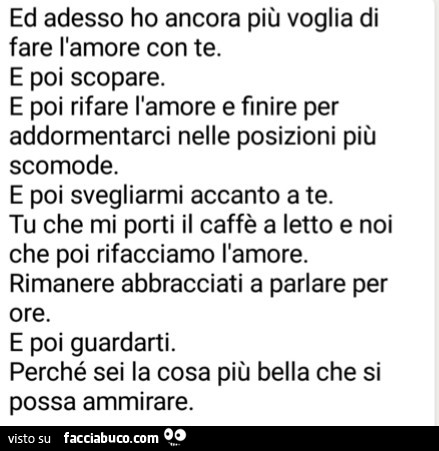 Puoi fare sesso con una persona che conosci da una vita, ma difficilmente riusciresti a fare l’amore con una che hai appena incontrato . Le eccezioni esistono, sicuramente . Ma per fare l’amore, quello vero, è fondamentale aver instaurato un certo rapporto, desiderare di condividere con l’altro molto di più che l’atto sessuale in sé .