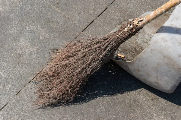 Piccola ragazza bionda scopa alla pecorina