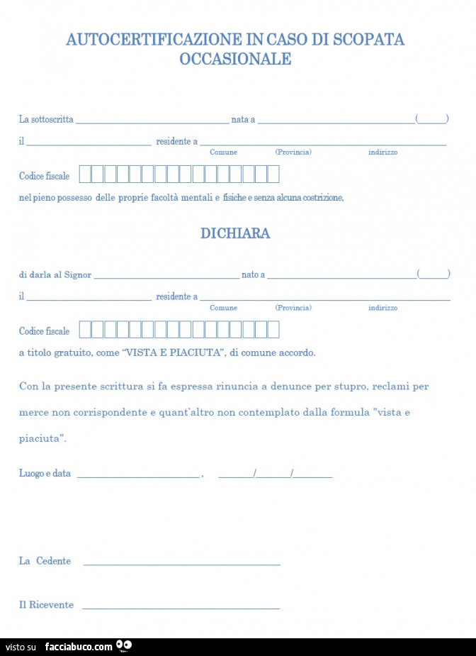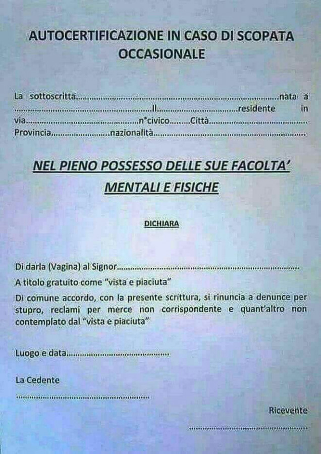 Autocertificazione In Caso Di Scopata Occasionale . . .