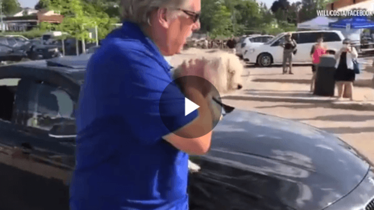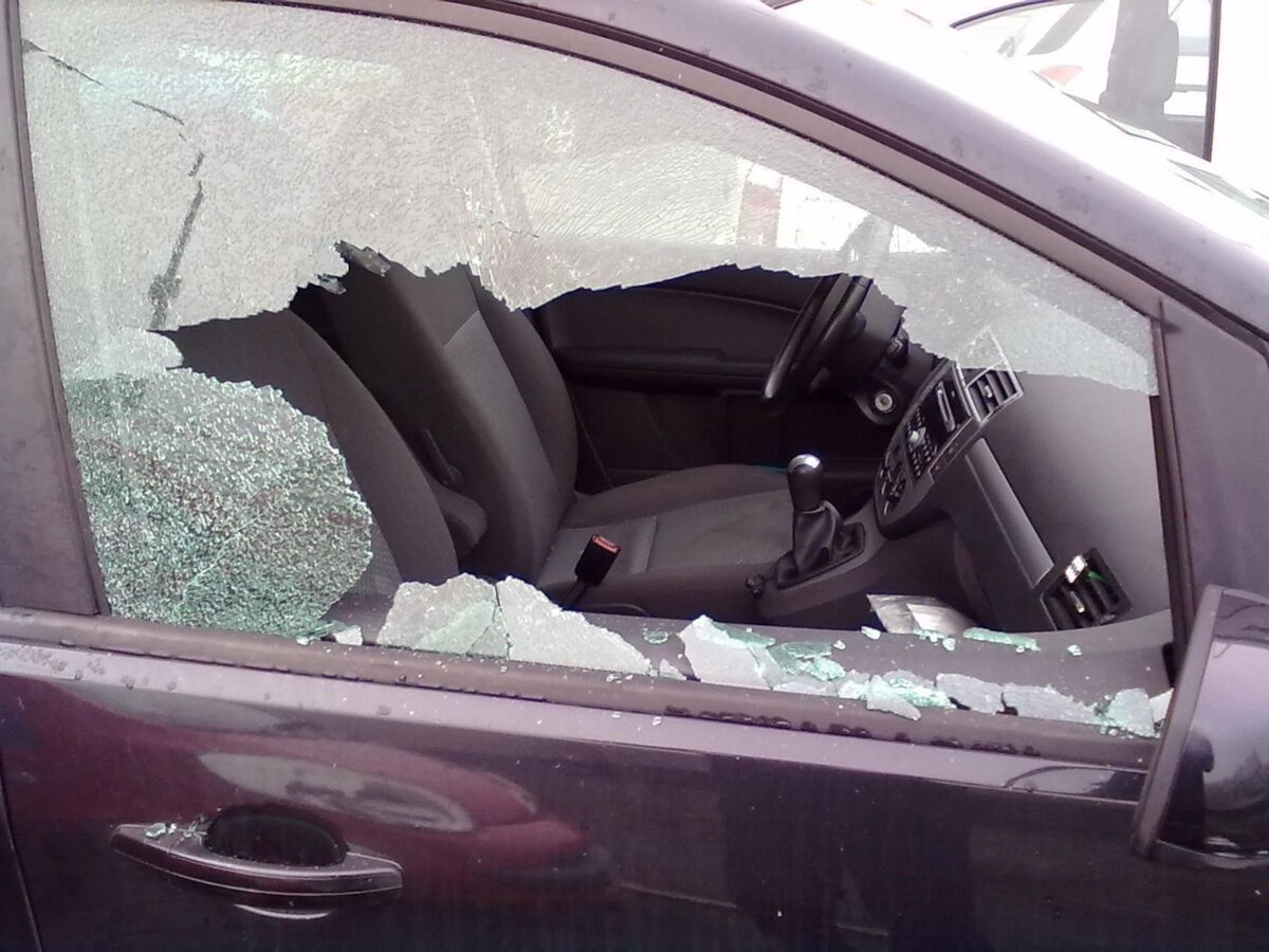 Cerca di rompere il finestrino di un'auto con una scopa . . .