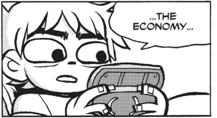 Також "Скотт Пілігрім" — це про очевидно натхненний мангою експресивний графічний стиль. Він лаконічний, але при цьому максимально приємний оку: лайнарт та кольори, на мою думку, просто шикарні.