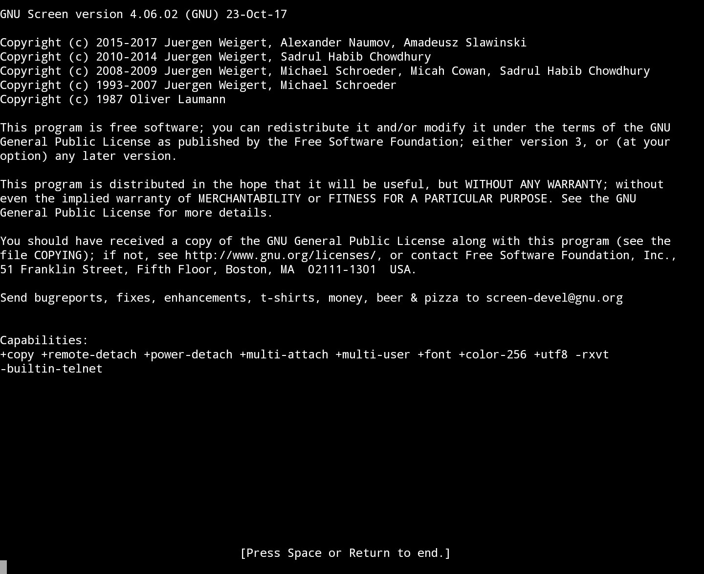 Для выхода из менеджера окон нажмите Ctrl + a и d.