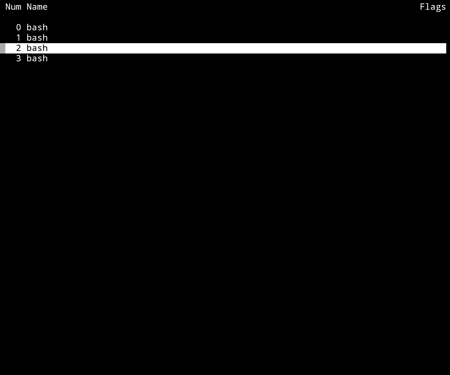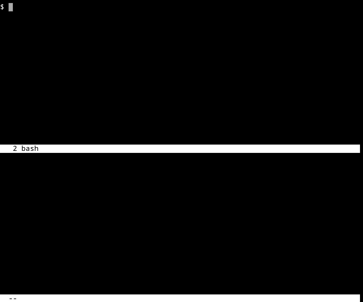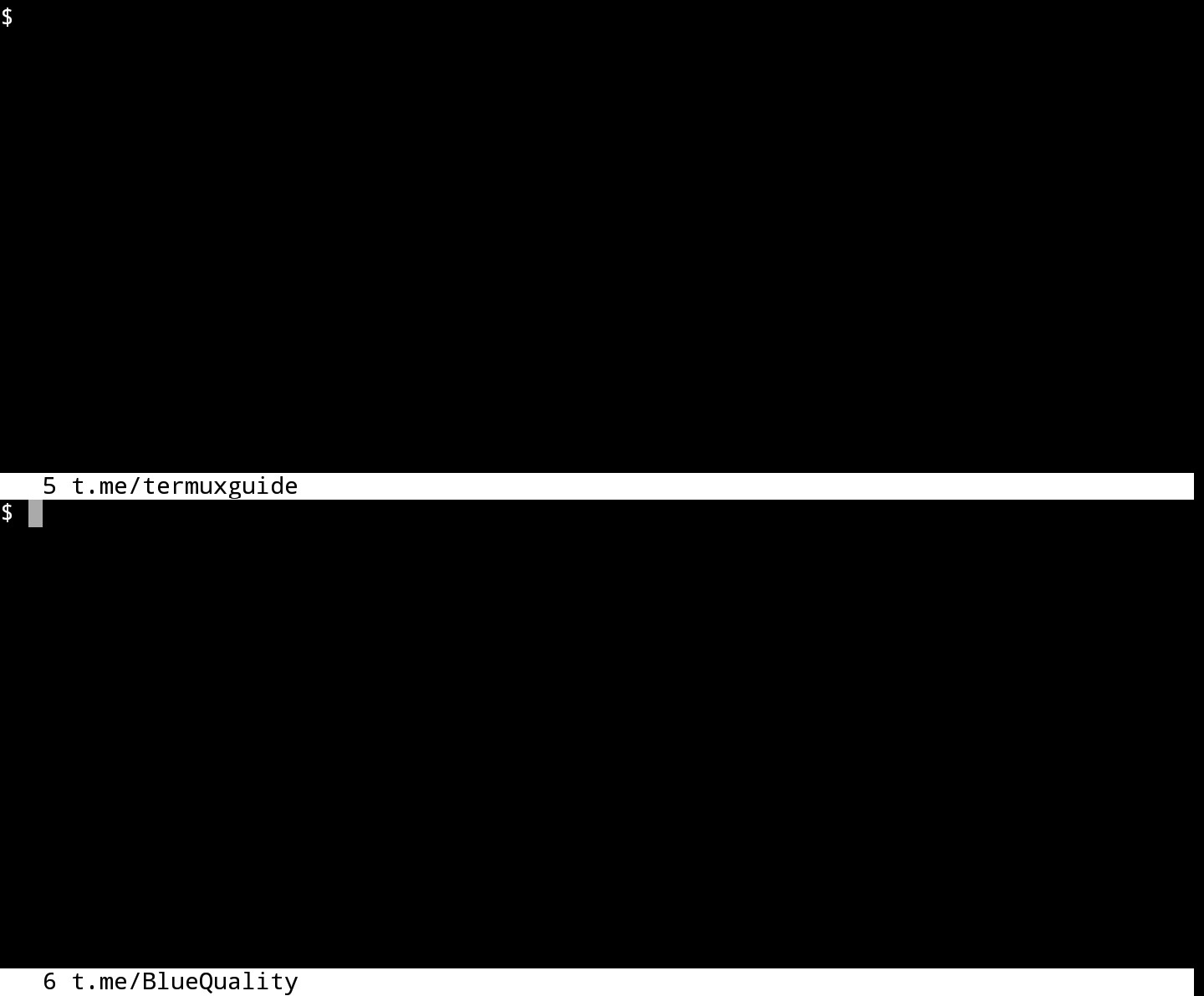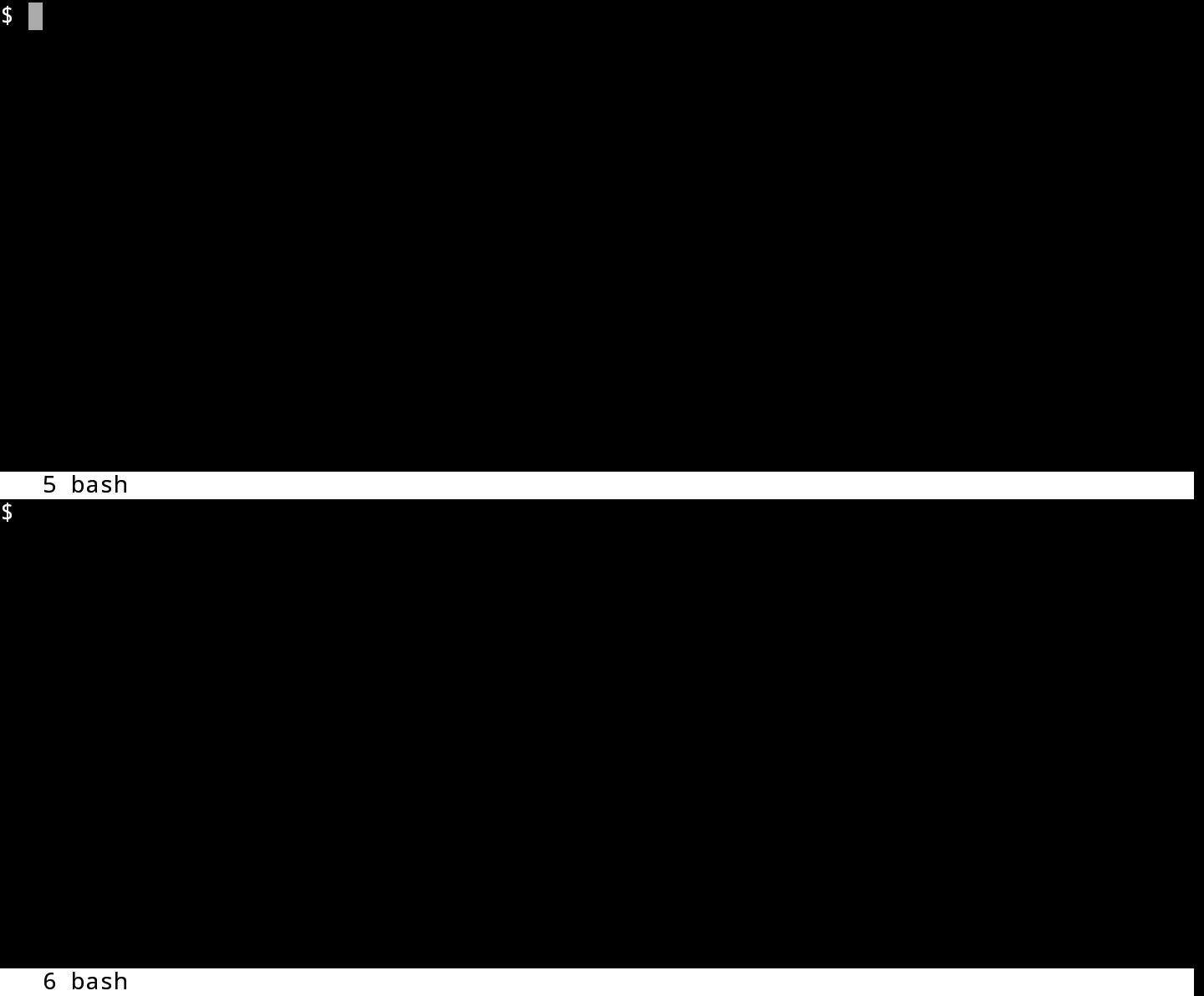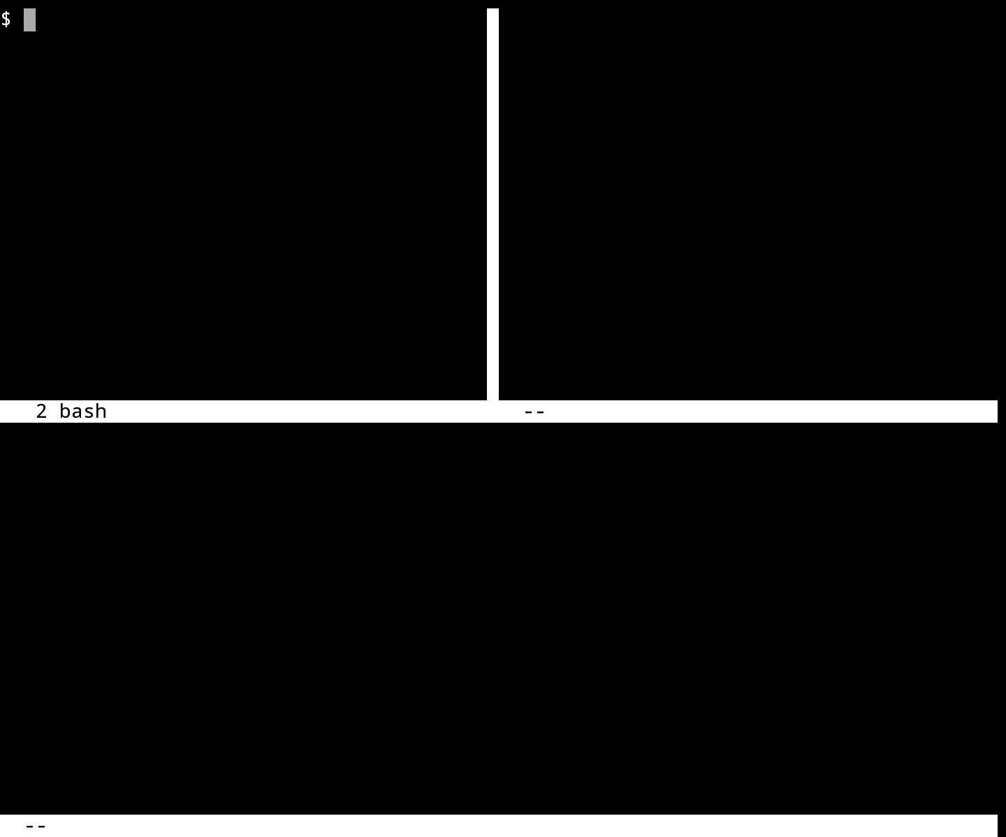 Были созданы новые пустые окна. Для переключения между ними используйте Ctrl + a и Tab (или напишите focus). Переключаться между окнами также можно тапом по экрану. Положение курсора указывает, какое окно является активным в данный момент. Для скрытия окна используйте Ctrl + a и X (или введите remove).