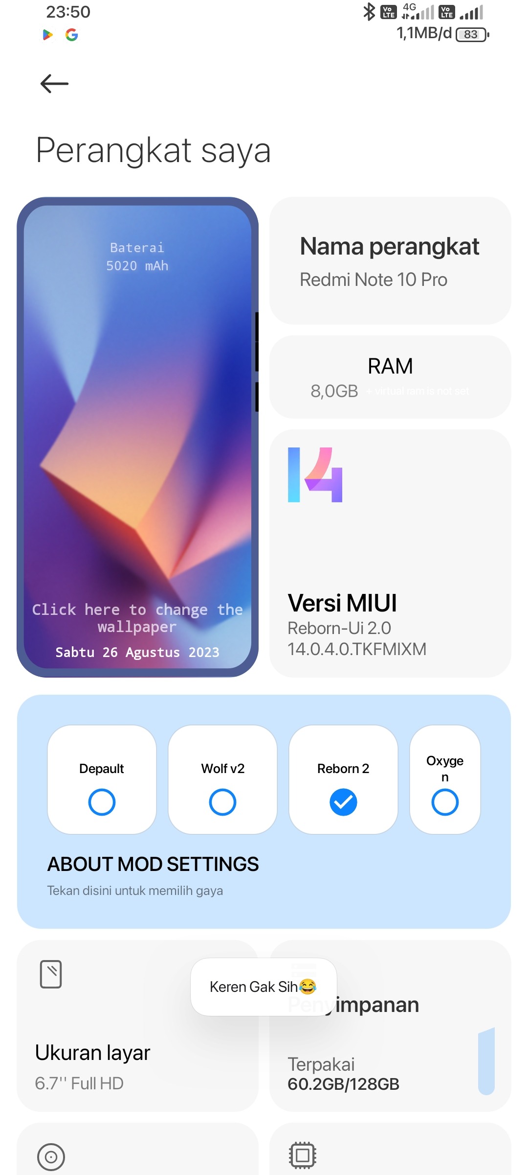 Screenshot@ginkromHome screen Default StyleWolf styleReborn styleOxygen StyleSuper Folder with additional 2x1 and 1x2 optionsPlugin by MIUI VNReborn feature rom
