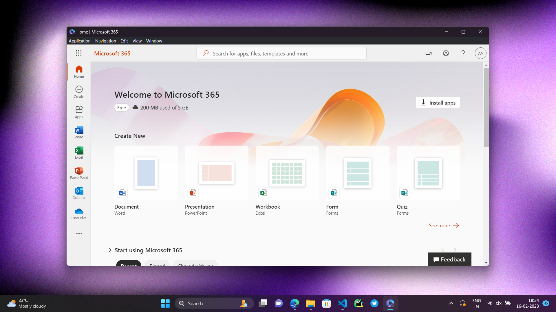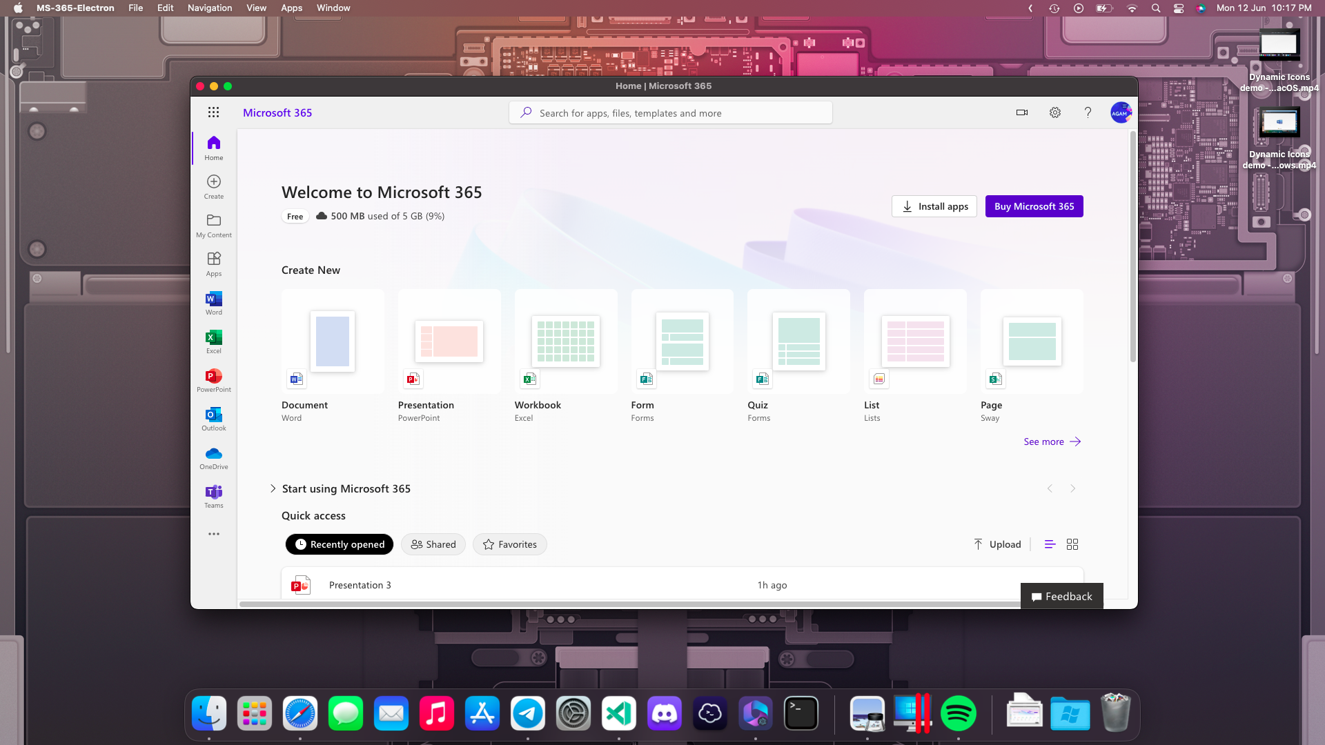Screenshot for MS 365 electron