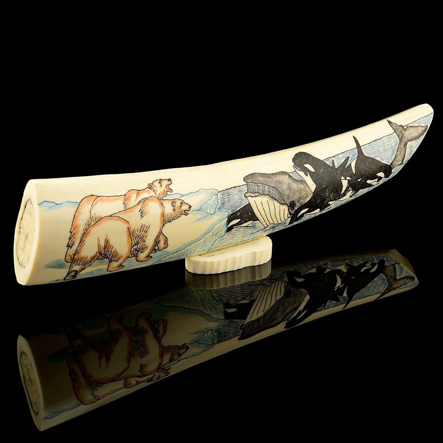 Sculpture sur os "Épaulards" Dimensions : longueur - 400 mm largeur - 123 mm hauteur - 123 mm Matériaux : osSculpture sur os "Épaulards" Dimensions : longueur - 400 mm largeur - 123 mm hauteur - 123 mm Matériaux : os