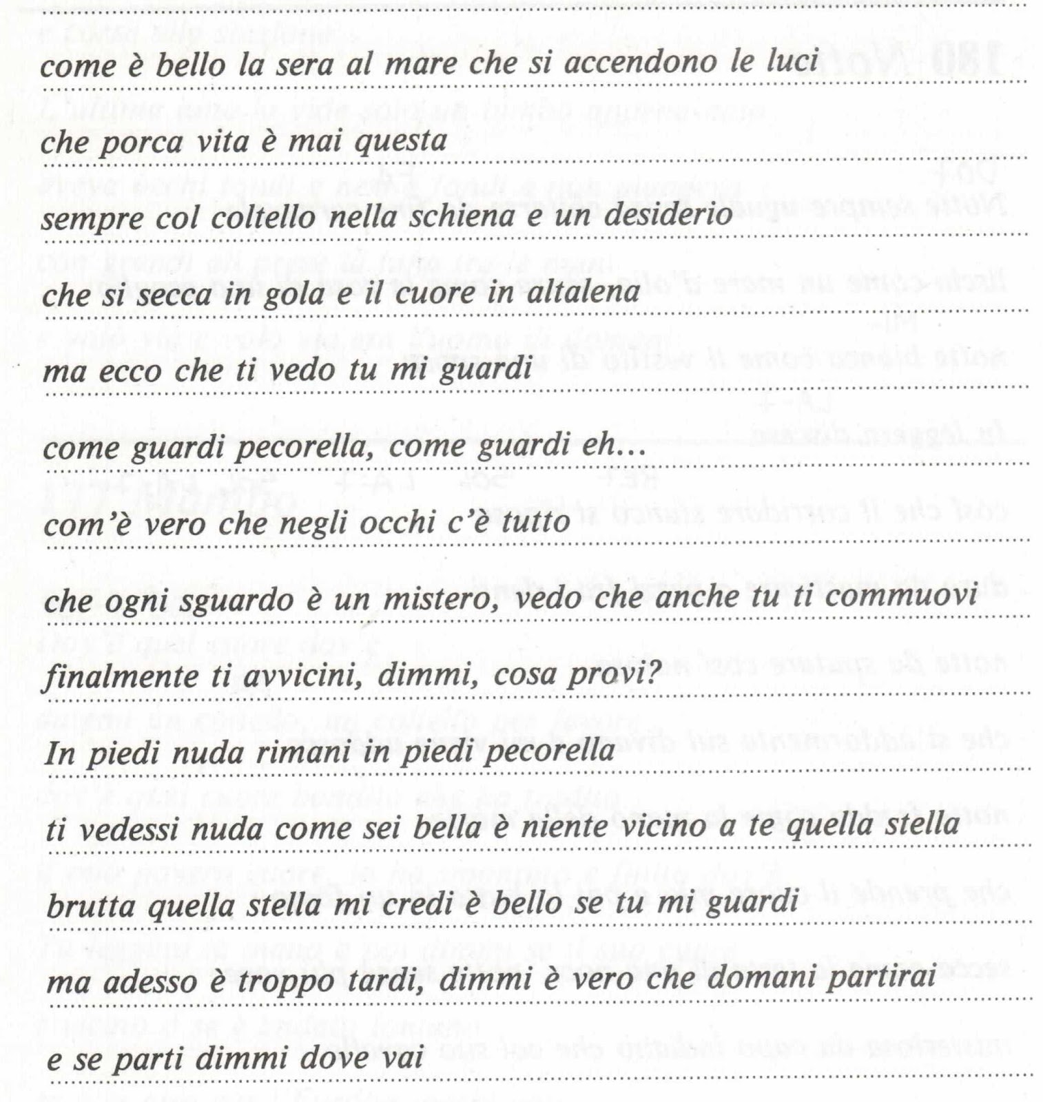 mi guardi, ed io mi illumino . ti accorgi sai vorrei subito spiegarti questa felicita ? un nodo in gola x non scioglierti mai senti dentro nell'anima ti prometto e se ci credi sar? parlano i silenzi x noi e sar? facile , possibile se vuoi se ci credi addormentarsi ogni notte ? come morire se mi manchi di pi?