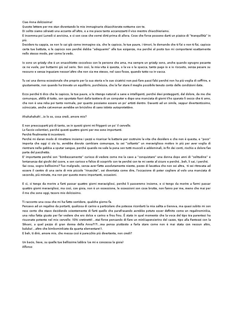 Se mi credi, non dovrei neanche dirti che mi manchi così tanto; i giorni passano ma il tempo non aggiusta nulla! L’aria fresca del mattino mi dà certo qualche attimo di sollievo ma è poco, è troppo poco per la mia serenità . Ti cerco, ti cerco e poi ti cerco ancora: col vuoto dentro e la voglia di te e ti cerco anche sotto la pioggia .