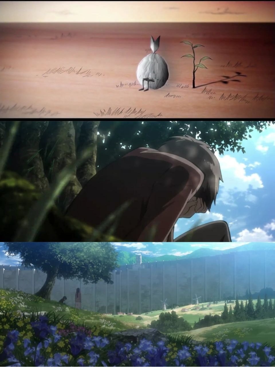 اینجا ارن کوچک اصلا خبر نداره که چرا نسخهی بزرگسال خودش داره گریه میکنه و احتمالا با خودش فکر میکنه که شاید برا همرزماش که تو جنگ کشته شدن داره گریه میکنه.💔