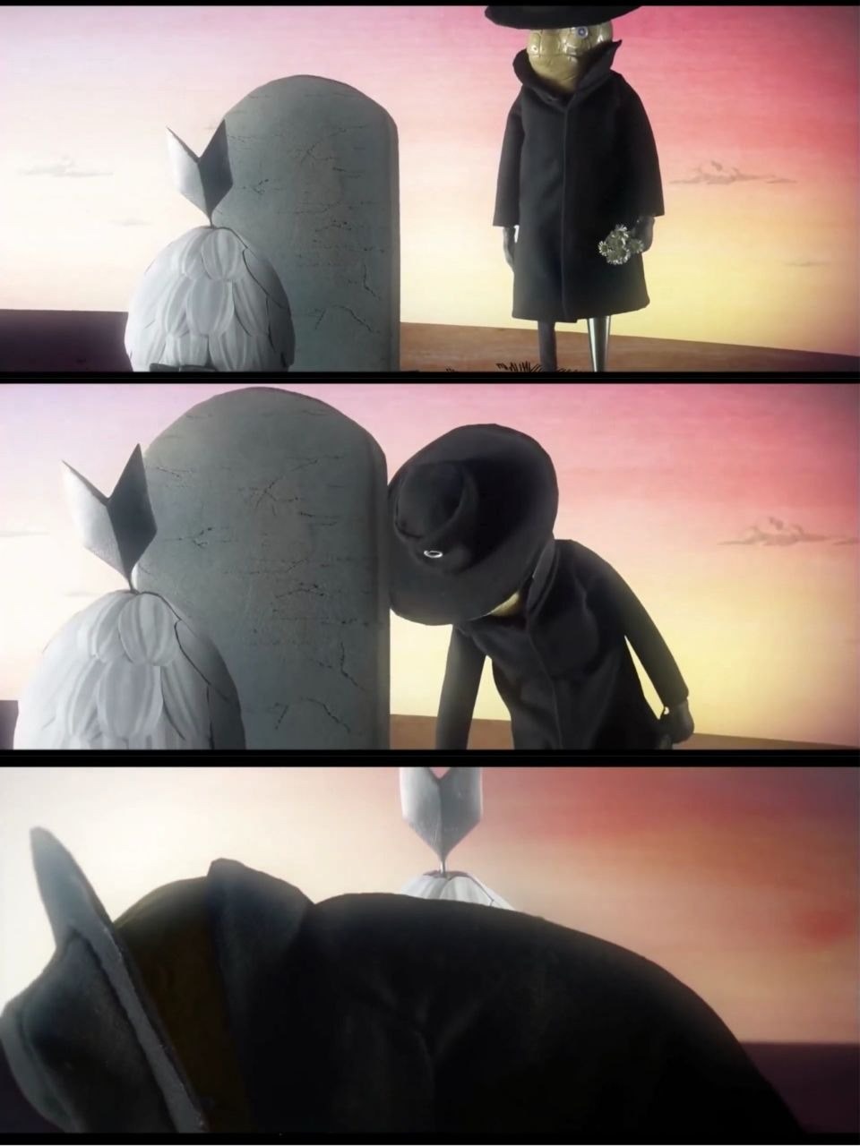 ارن پیر شده و از عصا استفاده میکنه و تا آخرین لحظه از عمرش به سوگواری ادامه میده و جالب اینه که تا آخرین لحظه از نقاب استفاده میکنه.