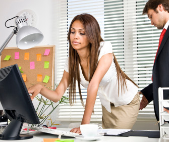 Prejudice office. Sexual harassment in business office. Lady secretary sexual attention to colleague. Prejudice office. Sexual harassment in business office