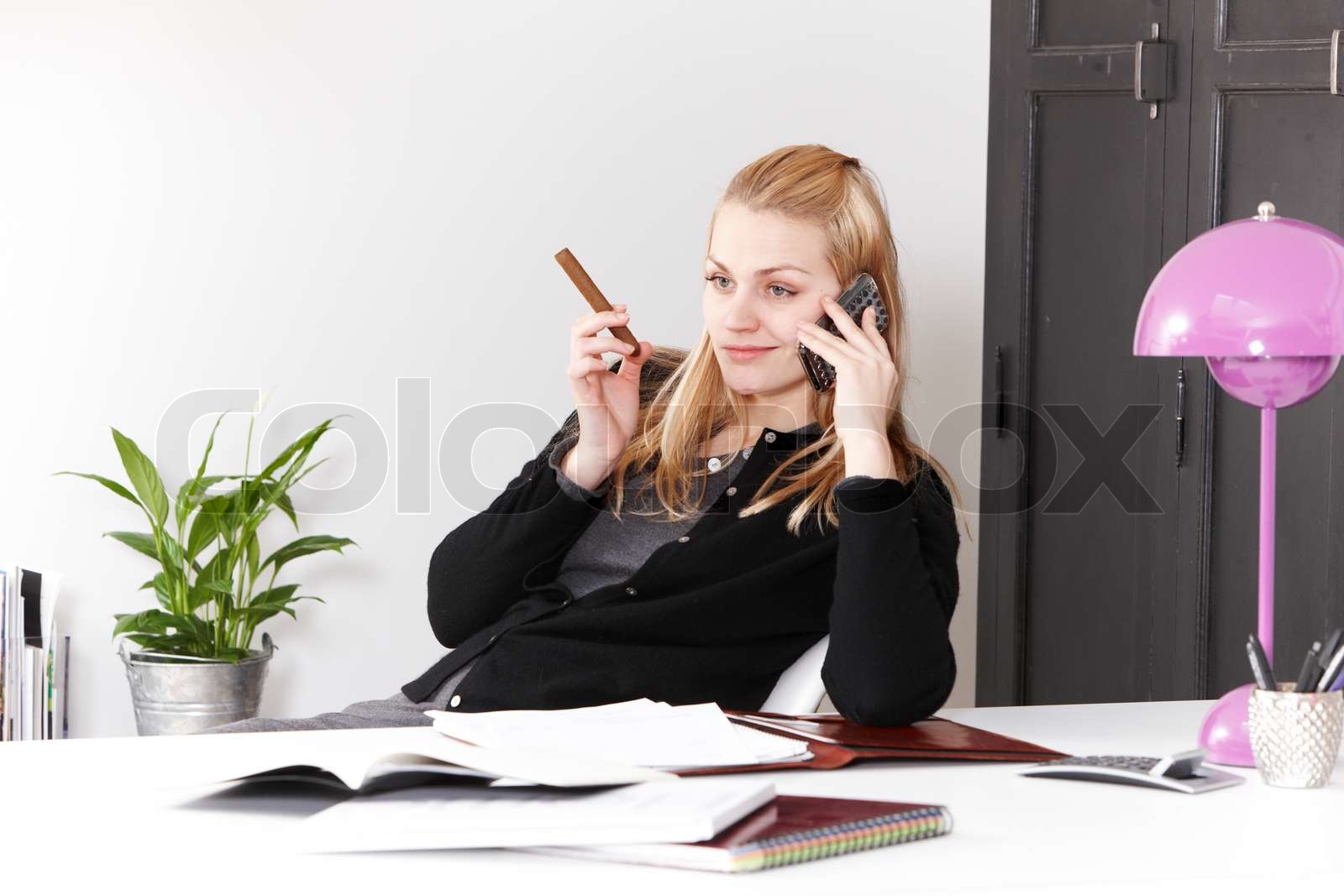 1236372761">3/stock-photo-boss-has-a-bad-mood-boss-smoking-a-pipe-secretary-waiting-for-directions-interior-of-office-26174140.jpg">